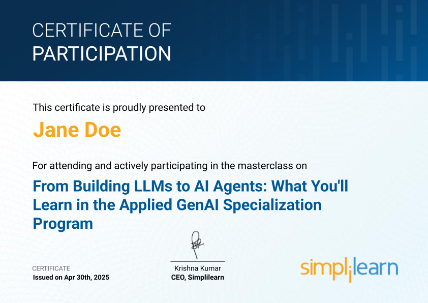 Ready to dive into the world of Generative AI? Don’t have months to master LLMs and AI agents? No problem! Join us on April 30, 2025, for an action-packed session where we’ll break down how the Applied GenAI Specialization Program from Purdue University Online and Simplilearn can equip you with hands-on skills to build LLMs and AI agents in no time.