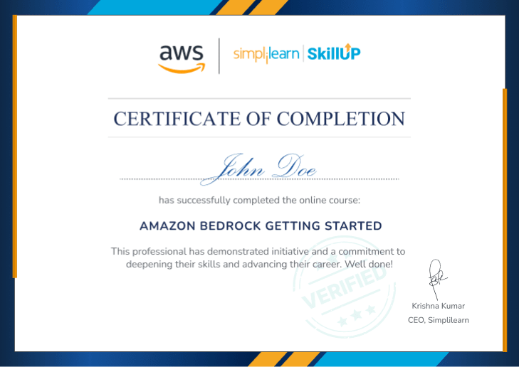 Upon successful completion of the free Amazon Neptune course, you will be awarded with the course completion certificate powered by AWS from SkillUp. This certificate will be delivered to you via email within 6 hours of course completion.