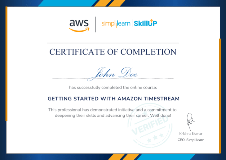 Upon successful completion of the course, you will be awarded with the course completion certificate powered by AWS from SkillUP. This certificate will be delivered to you via email within 6 hours of course completion.