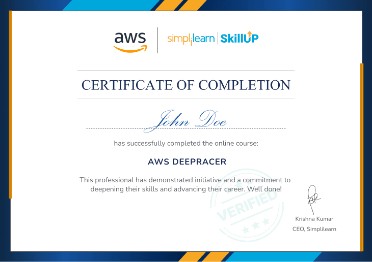 Upon successful completion of the course, you will be awarded with the course completion certificate powered by AWS from SkillUp. This certificate will be delivered to you via email within 6 hours of course completion.