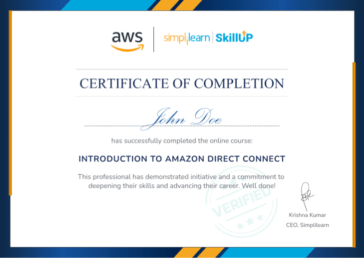 Upon successful completion of the course, you will be awarded with the course completion certificate powered by AWS from SkillUp. This certificate will be delivered to you via email within 6 hours of course completion.