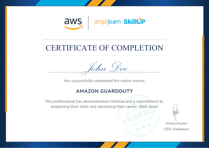 Upon successful completion of the course, you will be awarded with the course completion certificate powered by AWS from SkillUp. This certificate will be delivered to you via email within 6 hours of course completion.