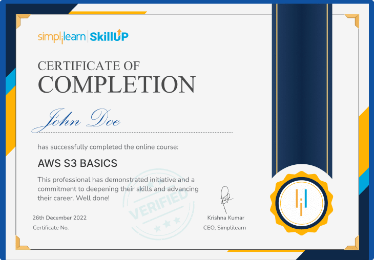 Yes, upon completion, you receive an Amazon S3 course certificate from SkillUp.