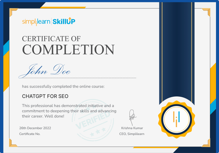 • Will I receive any certificate upon completing this ChatGPT for SEO course?