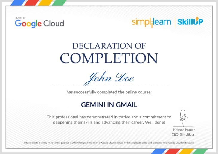 Upon successful completion of the course, you will be awarded the course completion certificate powered by Google Cloud and SkillUp.