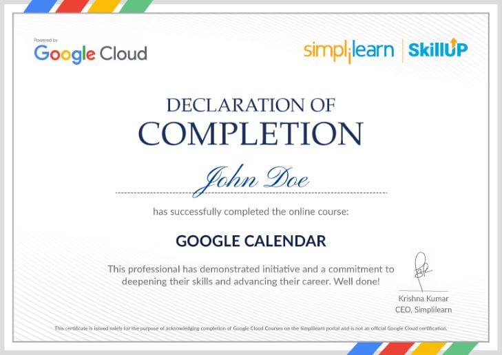 Upon successful completion of the course, you will be awarded with the course completion certificate powered by Google cloud from SkillUp.