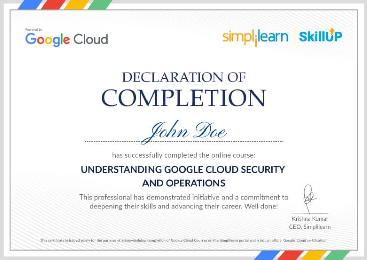 • Will I get a certificate after completing this understanding Google Cloud Security and Operations course?