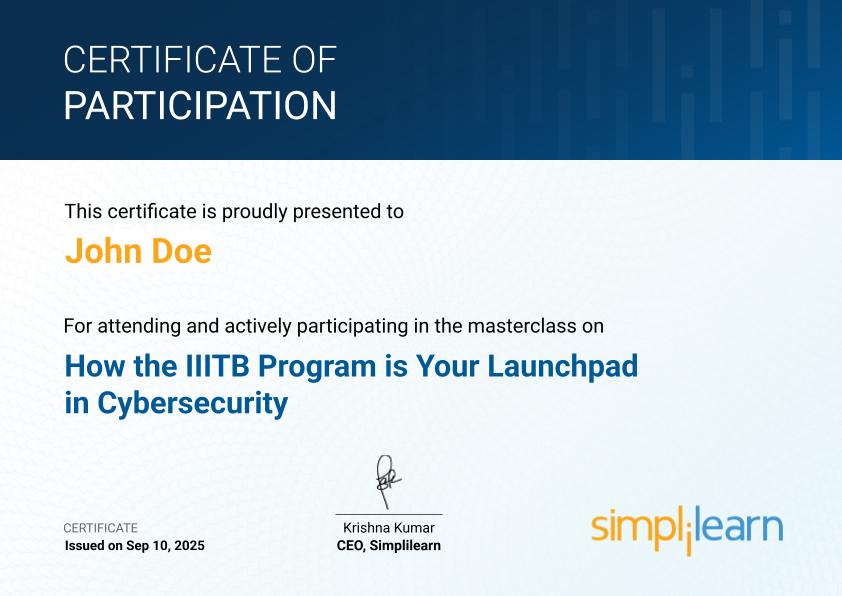 Join our webinar to explore the Advanced Executive Program in Cybersecurity offered by Simplilearn, in collaboration with IIIT Bangalore and Microsoft. In this session, you’ll discover how the program equips you with the right skills, hands-on projects, and industry credentials to break into the world of cybersecurity confidently.