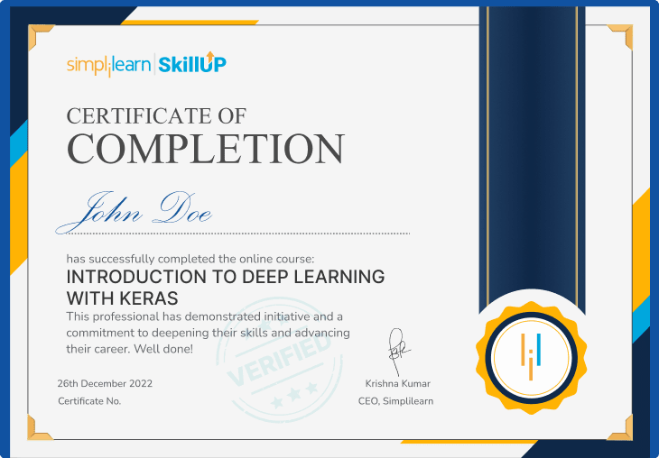 In this course, you'll explore deep learning fundamentals with Keras. You'll also explore TensorFlow, a powerful machine-learning framework developed by Google. You'll understand the differences between TensorFlow 1.0 and 2.0 and how they affect your projects. You'll also cover the basics of Keras and how to implement neural networks with it. By the end of this Keras online training, you'll have a good grasp of using Keras and TensorFlow for your machine learning tasks.