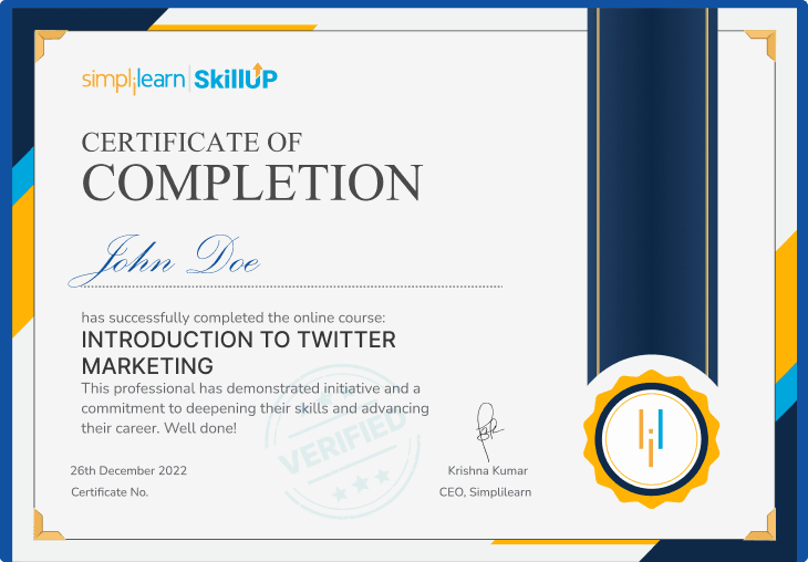 After completing the Twitter marketing course, participants will receive a certification that confirms their understanding of Twitter marketing concepts and strategies. This certification can enhance your professional portfolio and showcase your expertise in social media marketing.