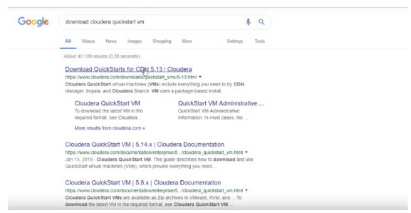 After performing the above steps, you'd have to wait for a while until the pop up asks you to restart the machine. Go through the same steps for the second machine, as well. Wait until both your machines are set up. Meanwhile, you can download the Cloudera QuickStart VM by looking for it on Google. Select the option illustrated below: