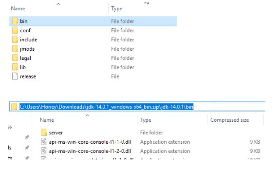 The JDK zip file will be available in your download folder. Unzip it and copy the location of the bin folder as shown below.