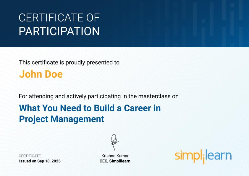Bonus: Attend the webinar and get a free participation certificate, and a roadmap to building your career in project management.